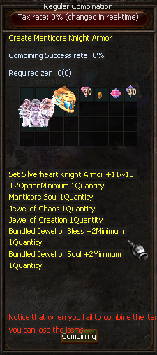 - 1 Silver Heart item +11 + Options + 1 Excellent Option (ITEM ACC)