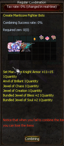 - 1 item Manticore +11 + Options + 1 opt excelent (ITEM ACC)